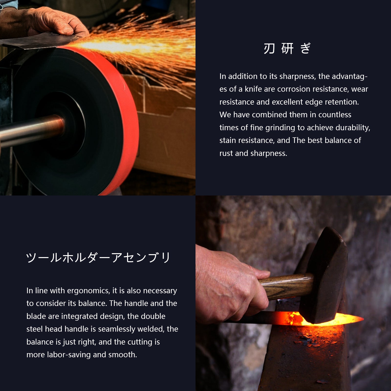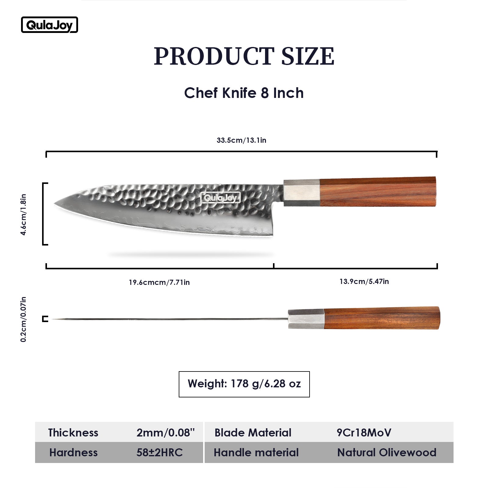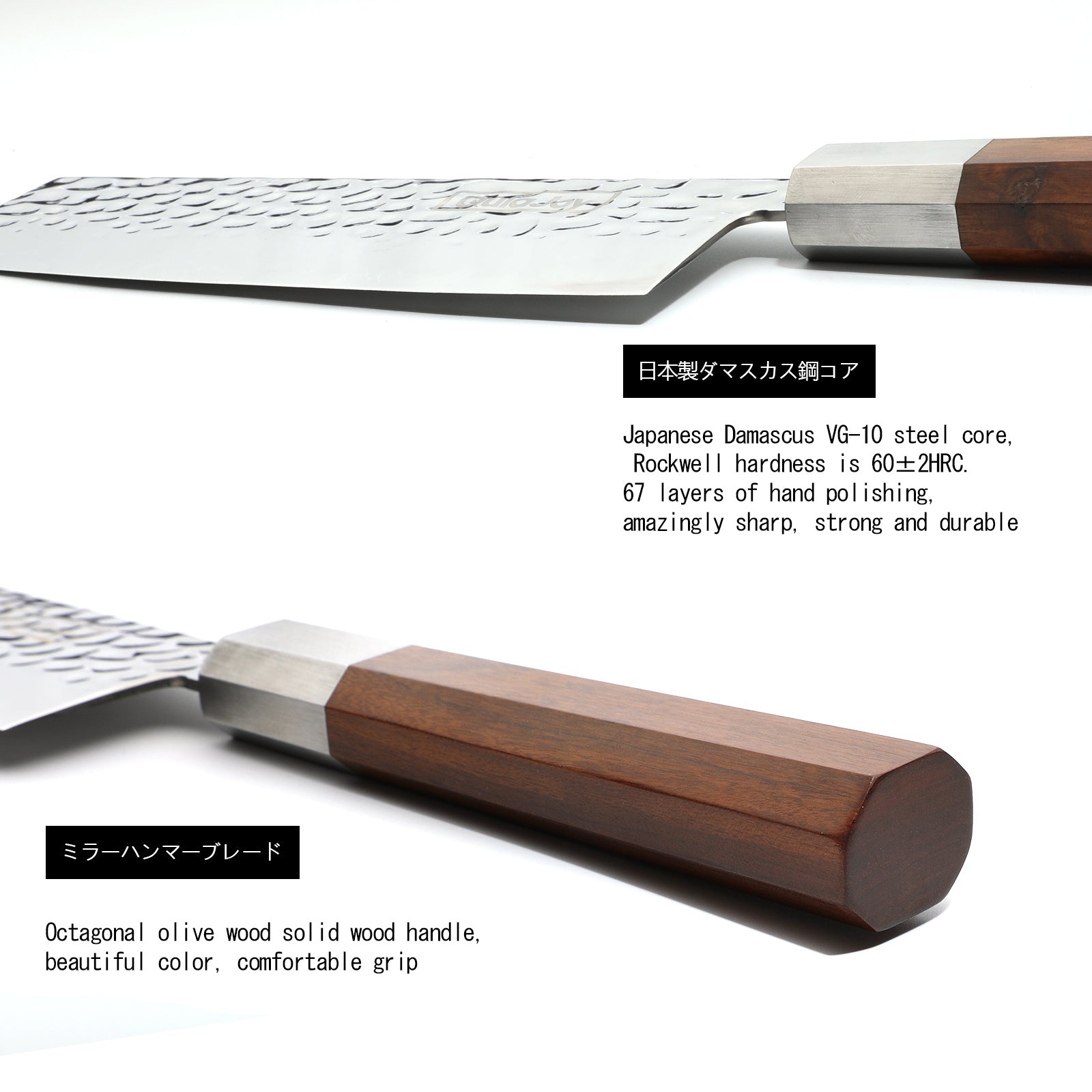 - 【COMFORTABLE HANDLE】Japanese-style octagonal handle design, made of high-quality olive wood, comfortable to hold, with excellent balance and flexibility. The handle won't break or deform, and the widened finger placement on the handle provides excellent control and grip for long hours of cutting.