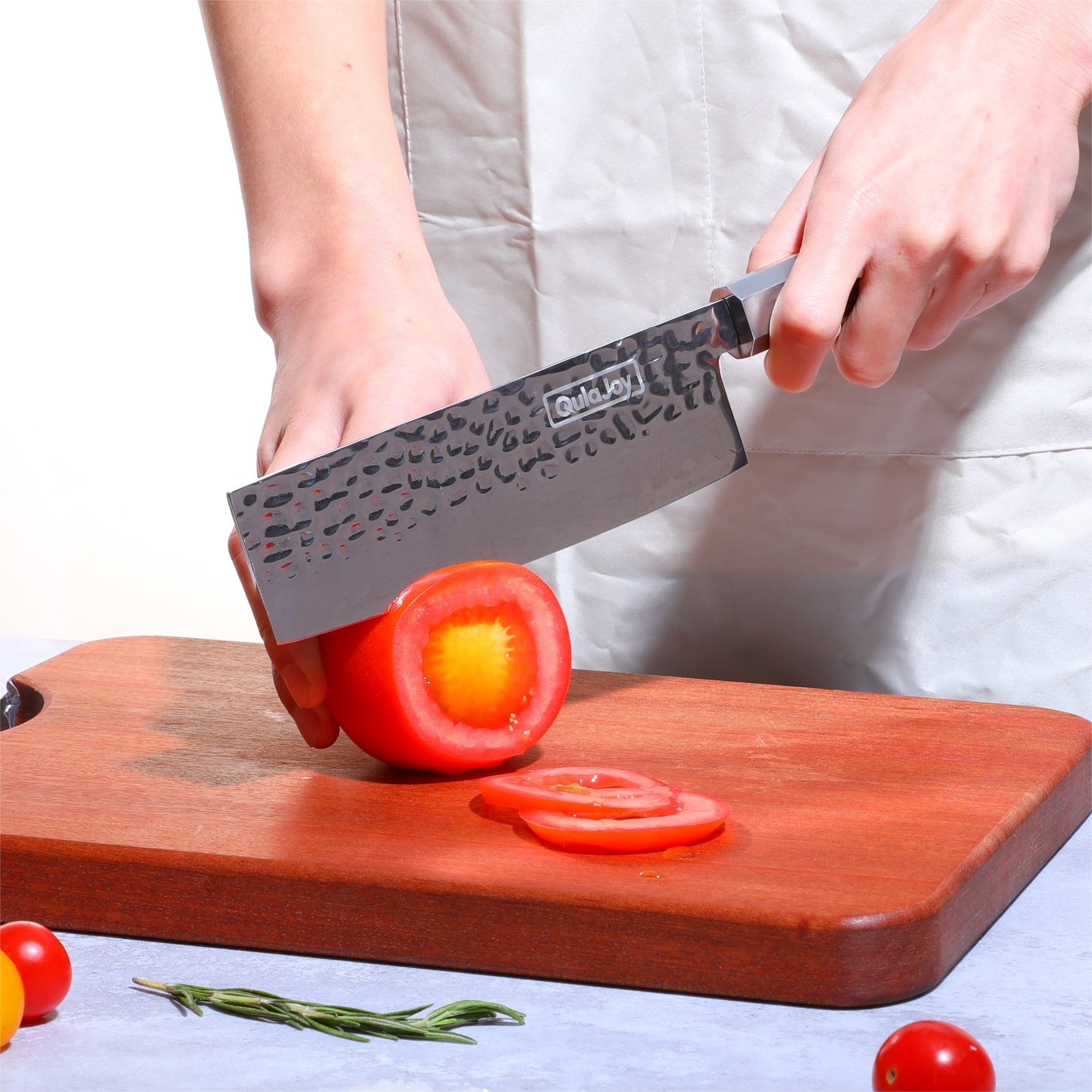 - 【JAPANESE KNIFE】Qulajoy 7-inch wooden handle kitchen knife is the perfect multi-purpose kitchen knife. Ideal for preparing meats, fruits and vegetables and more, and perfect for dicing, slicing and chopping, its performance combined with great looks will make it stand out in any kitchen!