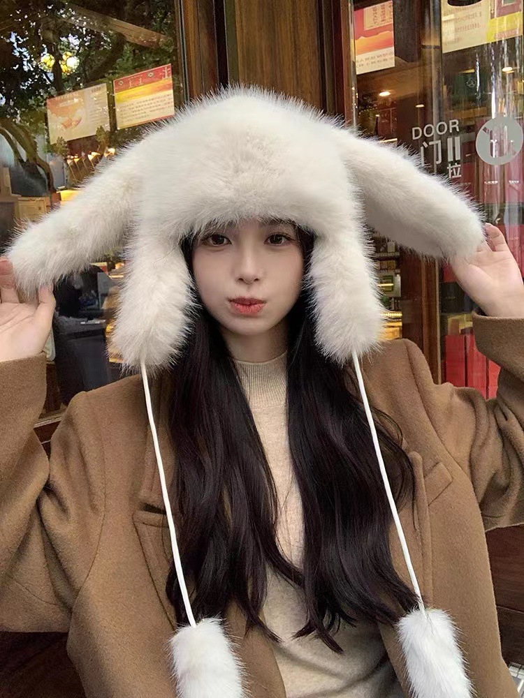 Rabbit Ears Plush Bonnet Children's Autumn And Winter Look Smaller
