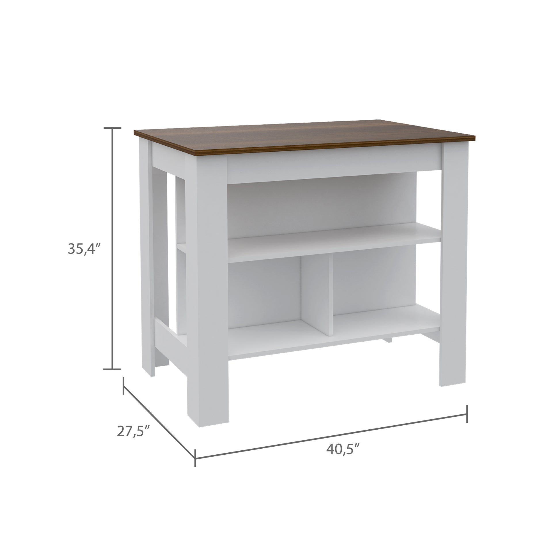Rockaway 3-Shelf Kitchen Island White And Walnut