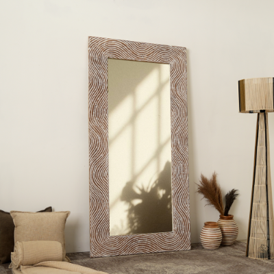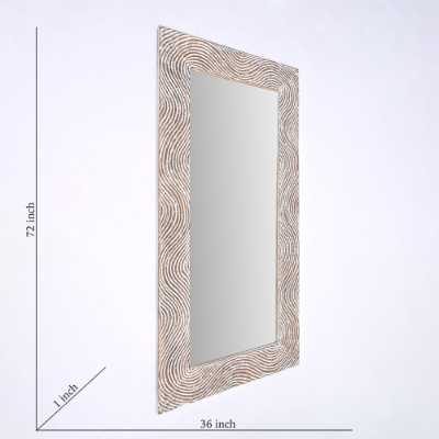 Product Name:Rustic White Solid Wood Handcarved Rectangle Mirror Accent-36" x 72"
