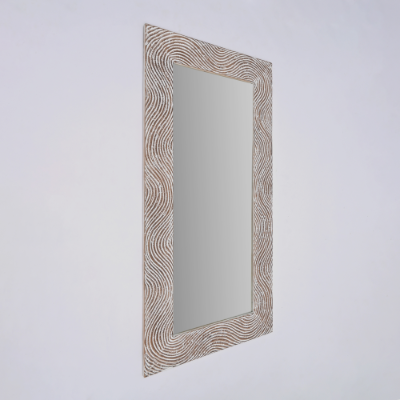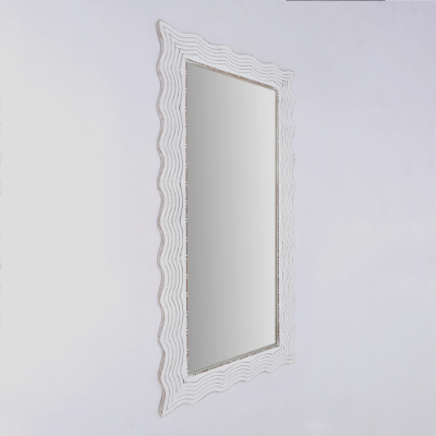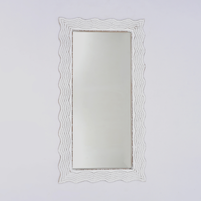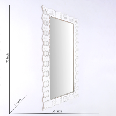 Rustic White Solid Wood Handcarved Wave Design Rectangle Mirror Accent-36 X 72