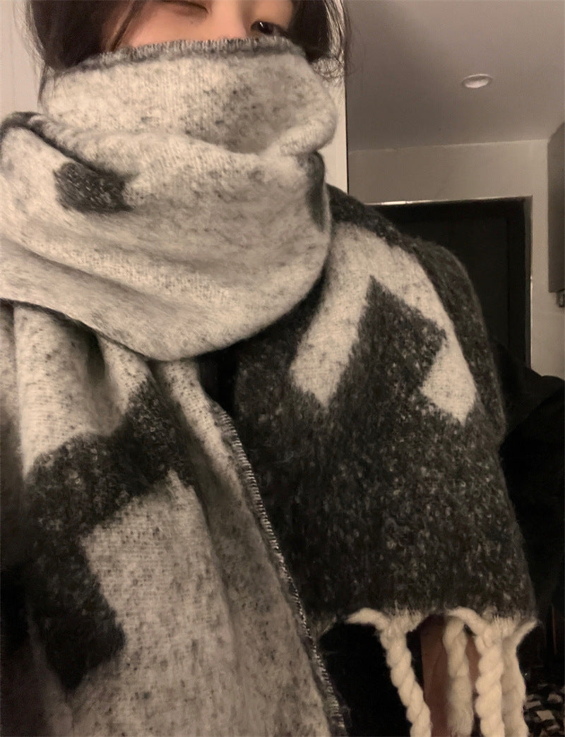 Senior Sense Korean Version Of Everything Warm Shawl Bib Dual-use Thick Scarf