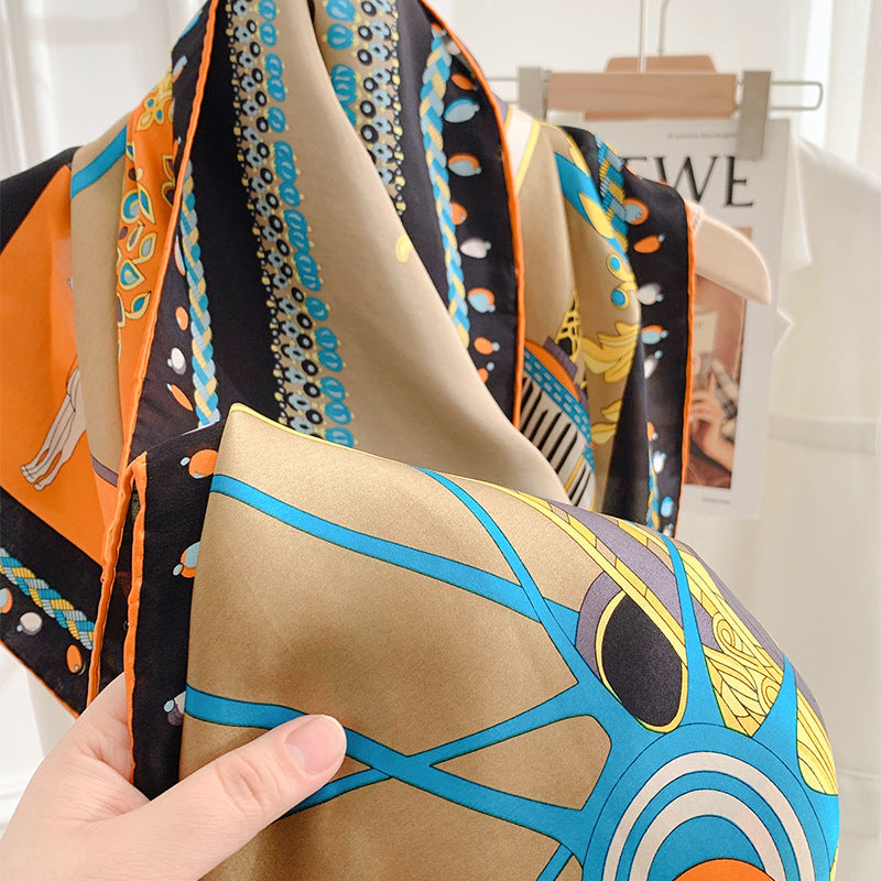 Silk Scarf Classic Orange Print Large Square Scarf Fashion