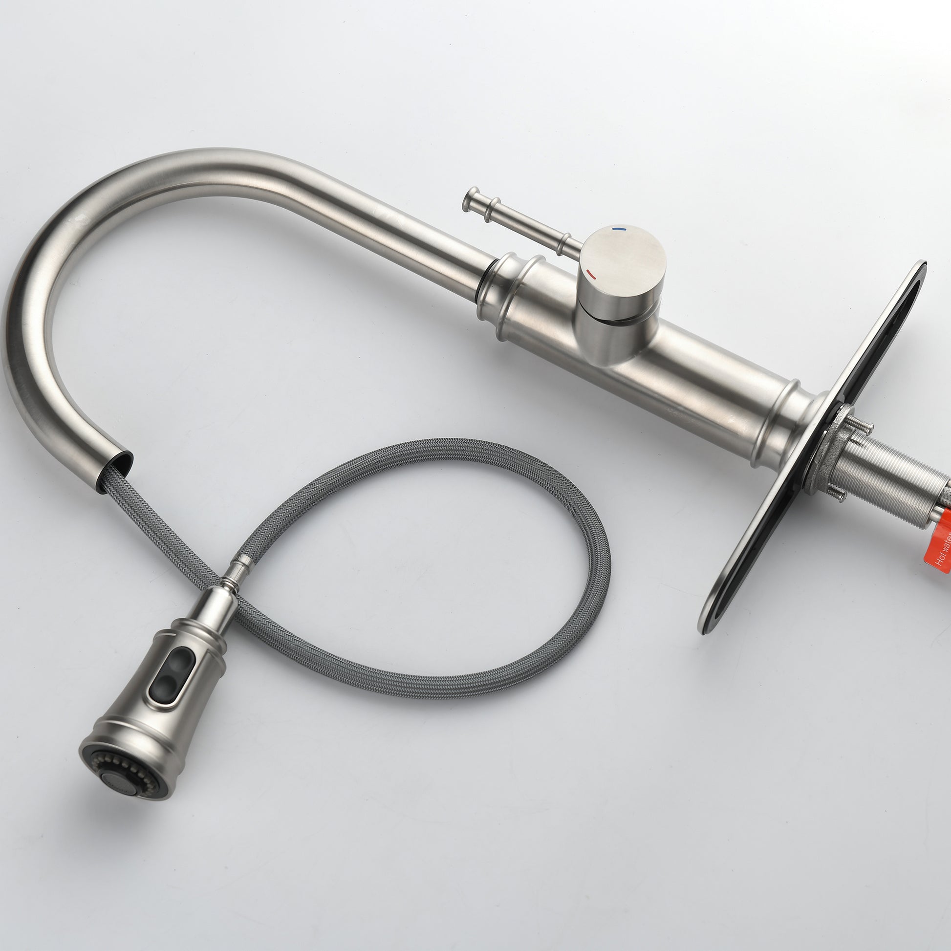 Single Handle High Pull Out Kitchen Faucet, Single-stage Stainless Steel Kitchen Sink Faucet, With Pull Down Spray