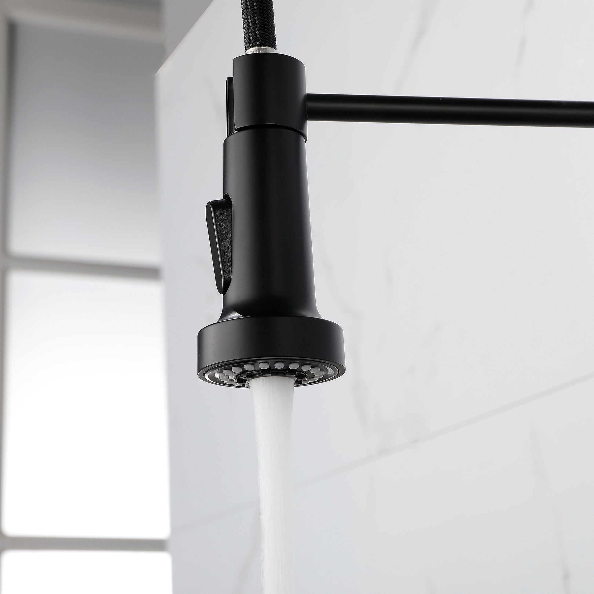 Kitchen Faucets Commercial Solid Brass Single Handle Single Lever Pull Down Sprayer Spring Kitchen Sink Faucet Matte Black