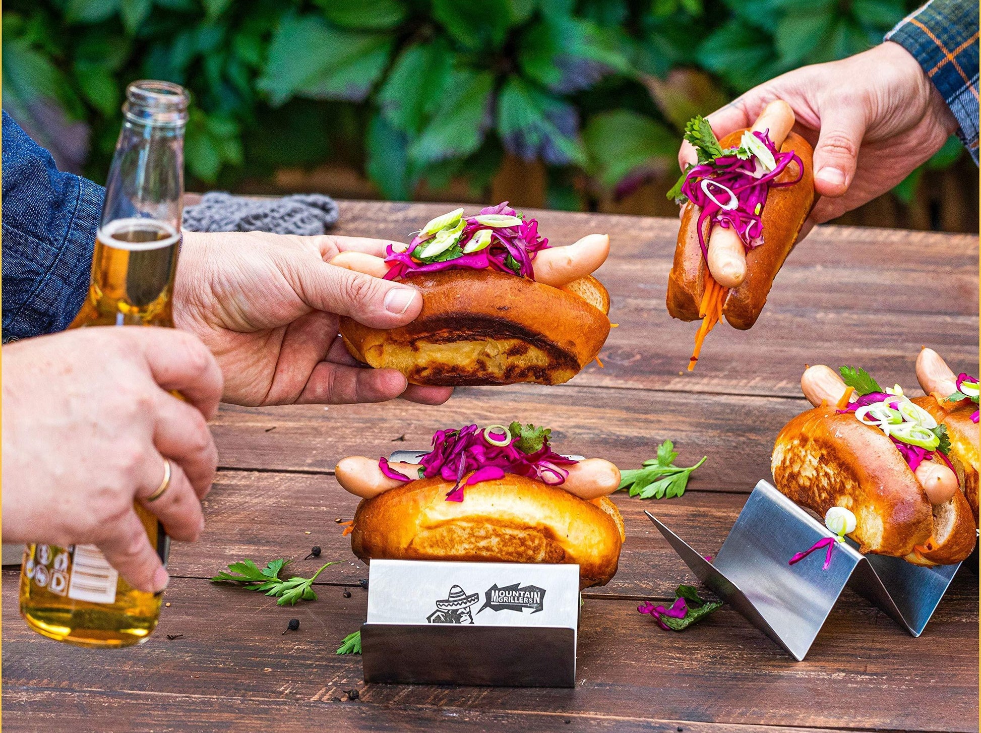 Spice up Taco Tuesday (or any day!) with this premium set of 4 reversible taco trays by Mountain Grillers. Whether you're serving two or three tacos, these W-shaped holders keep your shells upright and ready to load—no mess, no stress.