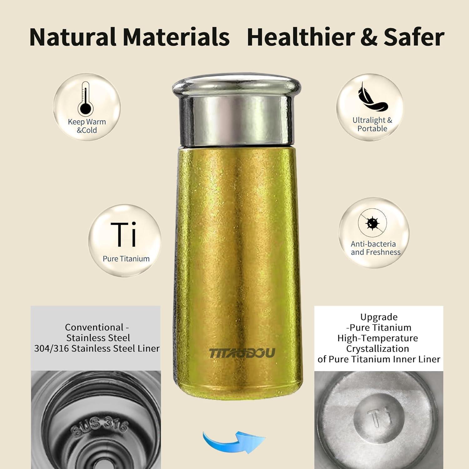 CORROSION-RESISTANT & DURABLE: Titanium naturally resists rust and corrosion, insulated water bottlefree from rust spots and discoloration surpassing stainless steel metal bottle in longevity.
