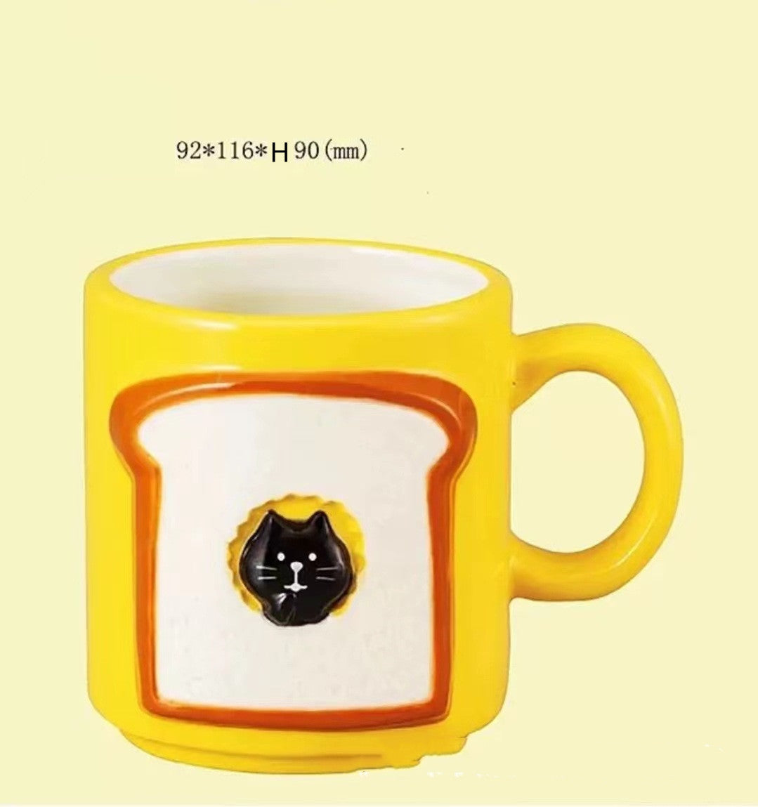 Toast Cat Cup French Stick Relief Ceramic Mug