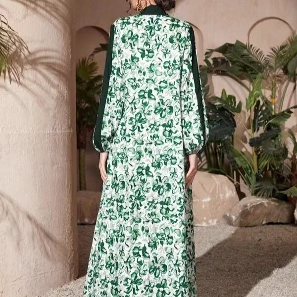 Two Piece Set Of Women's Contrasting Color Trimmed Floral Print Cardigan Jacket And Casual Loose Pants