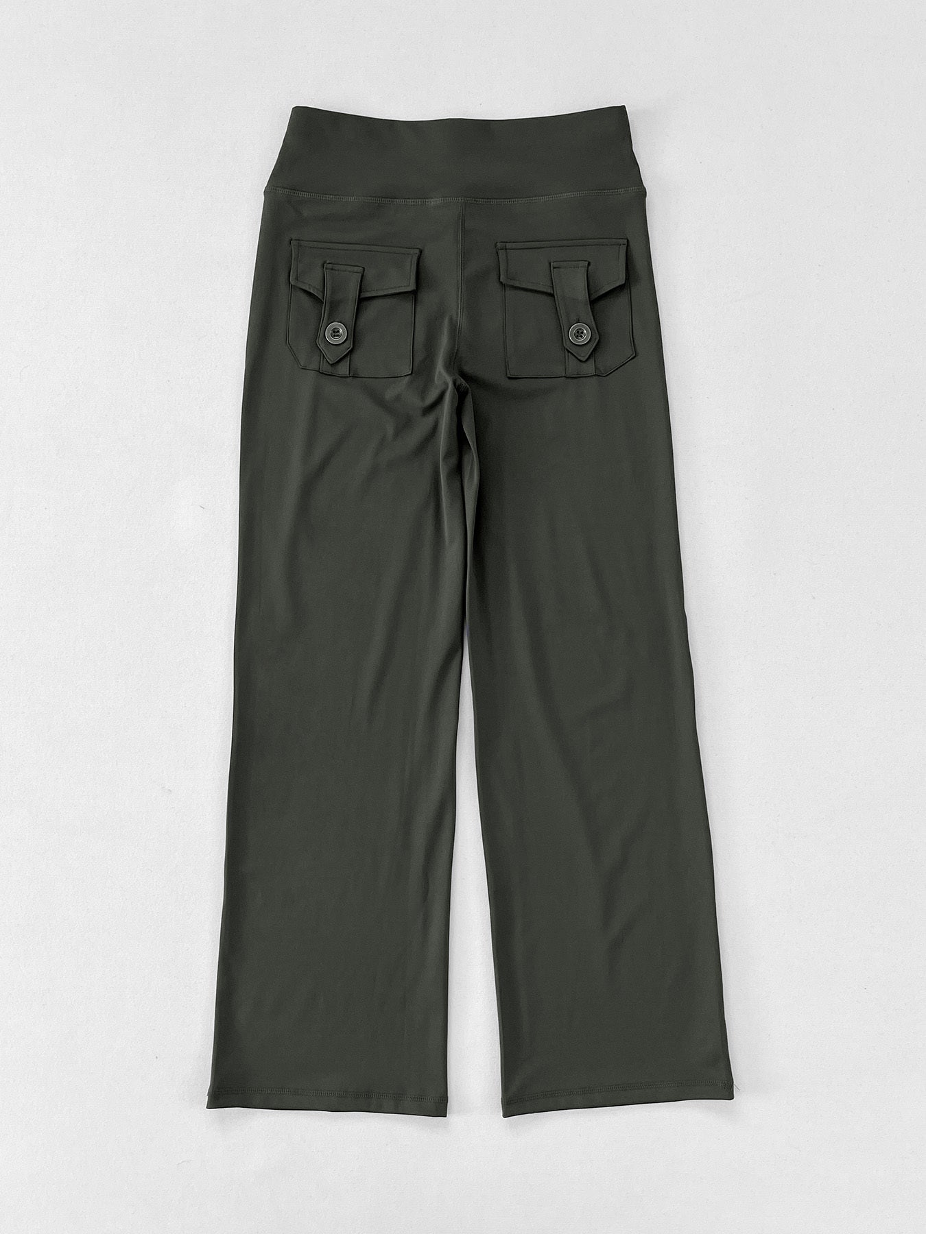 V-shaped Waist Peach Hip Yoga Pants, Women's Pocket Button Workwear Pants, High Waisted Hip Lifting Quick Drying Sports Pants