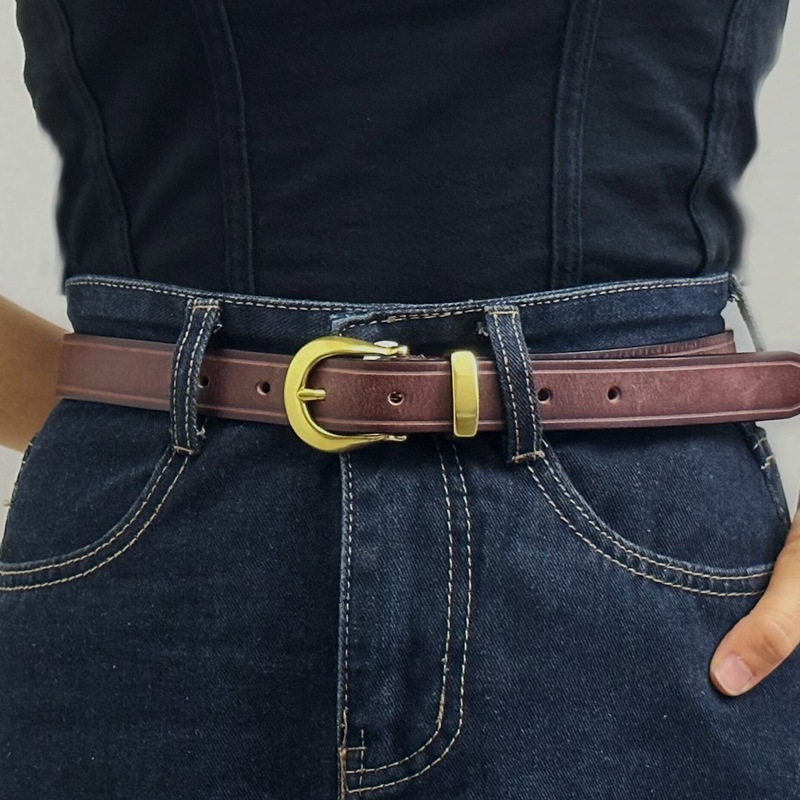 Versatile Personality Retro First Layer Pure Cattlehide Jeans Belt Women