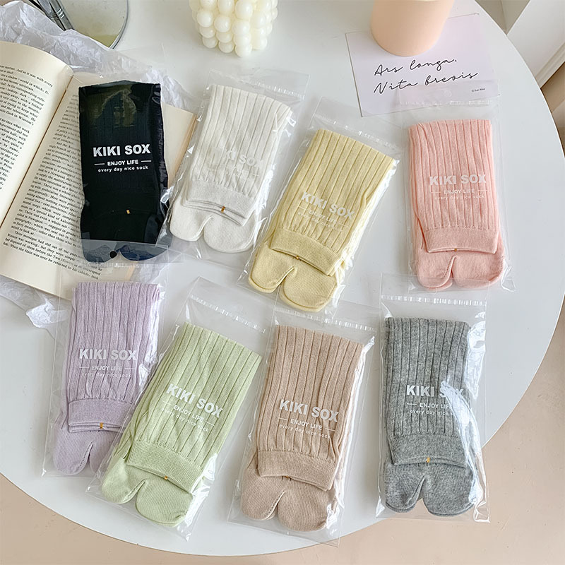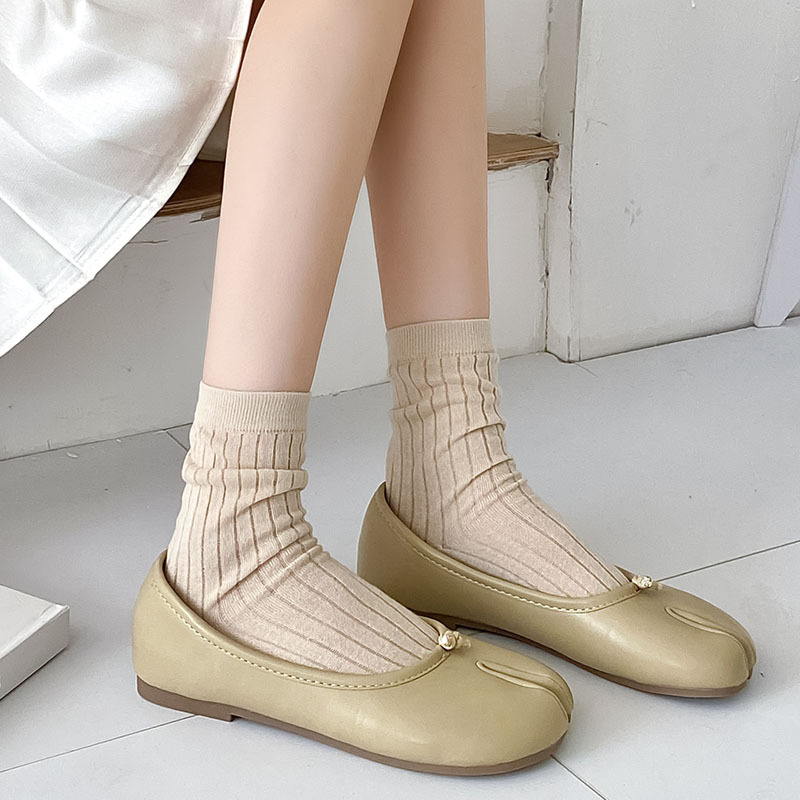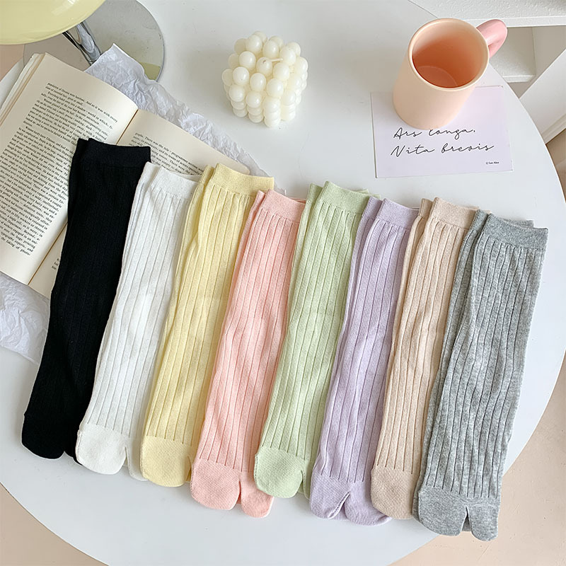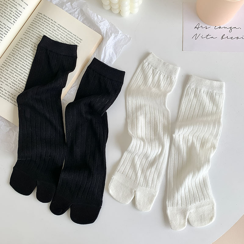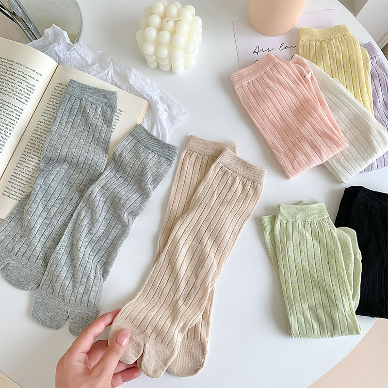Vertical Stripes Large Trotter Toe Socks Thin Solid Color