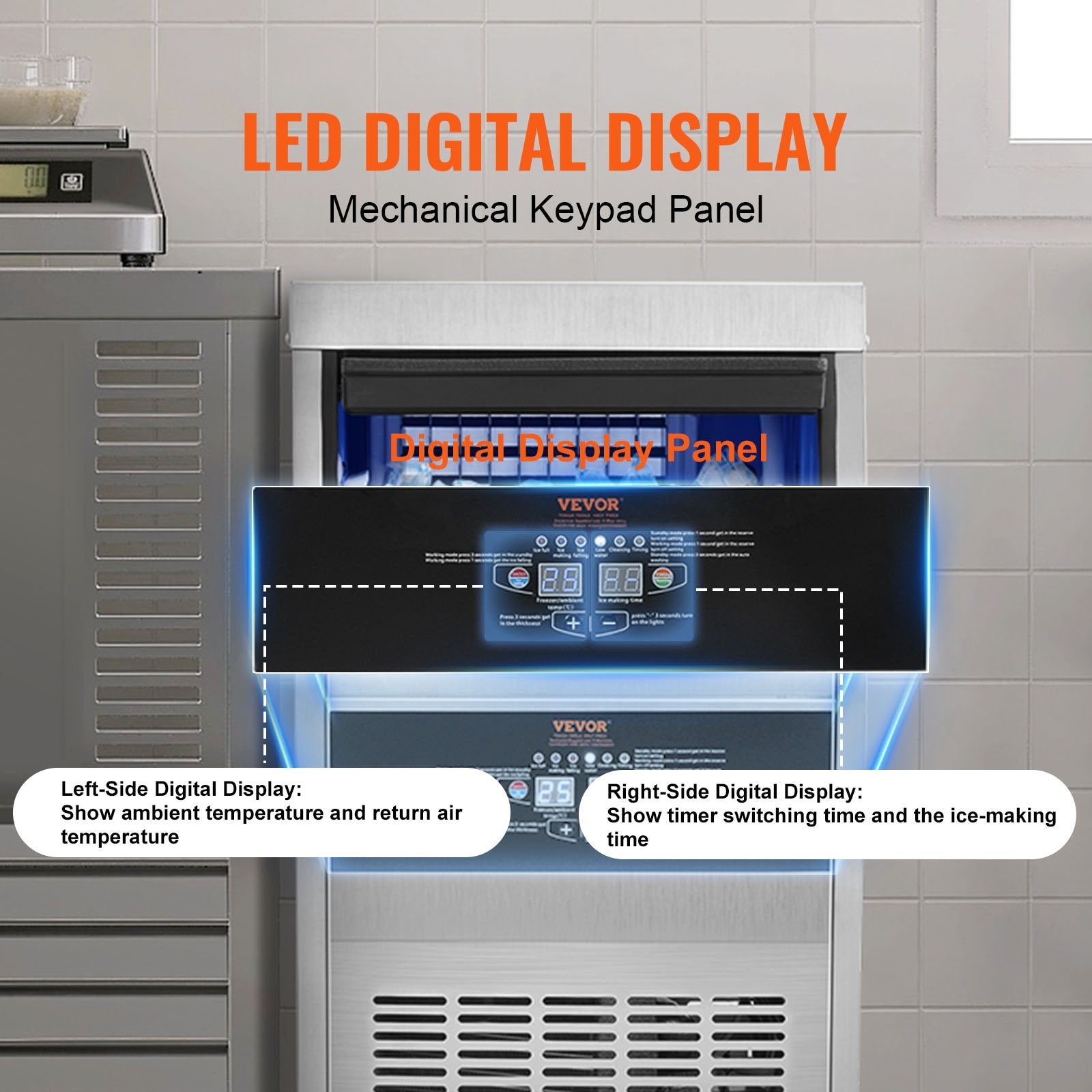 VEVOR 110V Commercial Ice Maker Machine 90LBS 24H With 24LBS Bin, Stainless Steel Automatic Operation Under Counter Ice Machine For Home Bar, Include Water Filter, Scoop, Connection Hose
