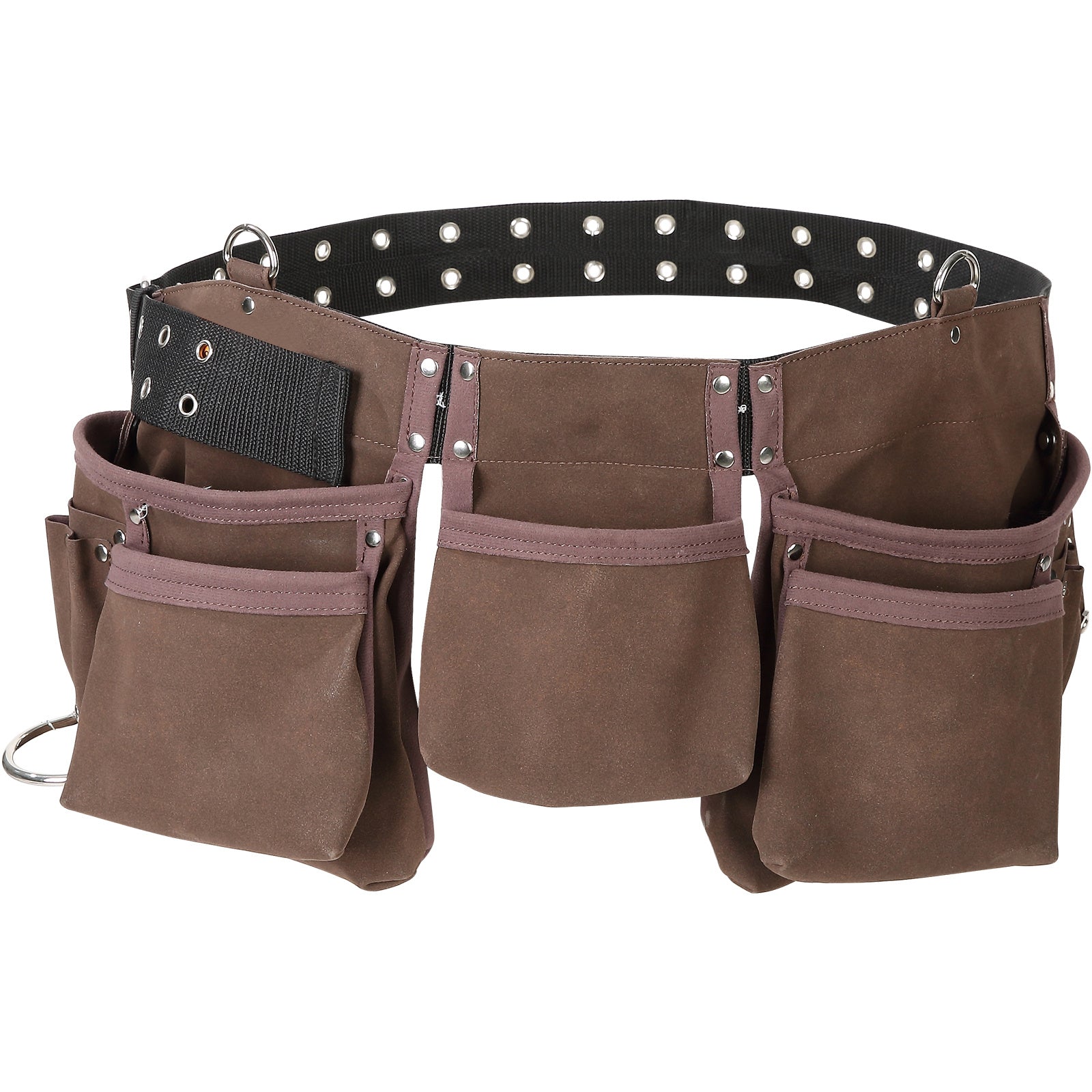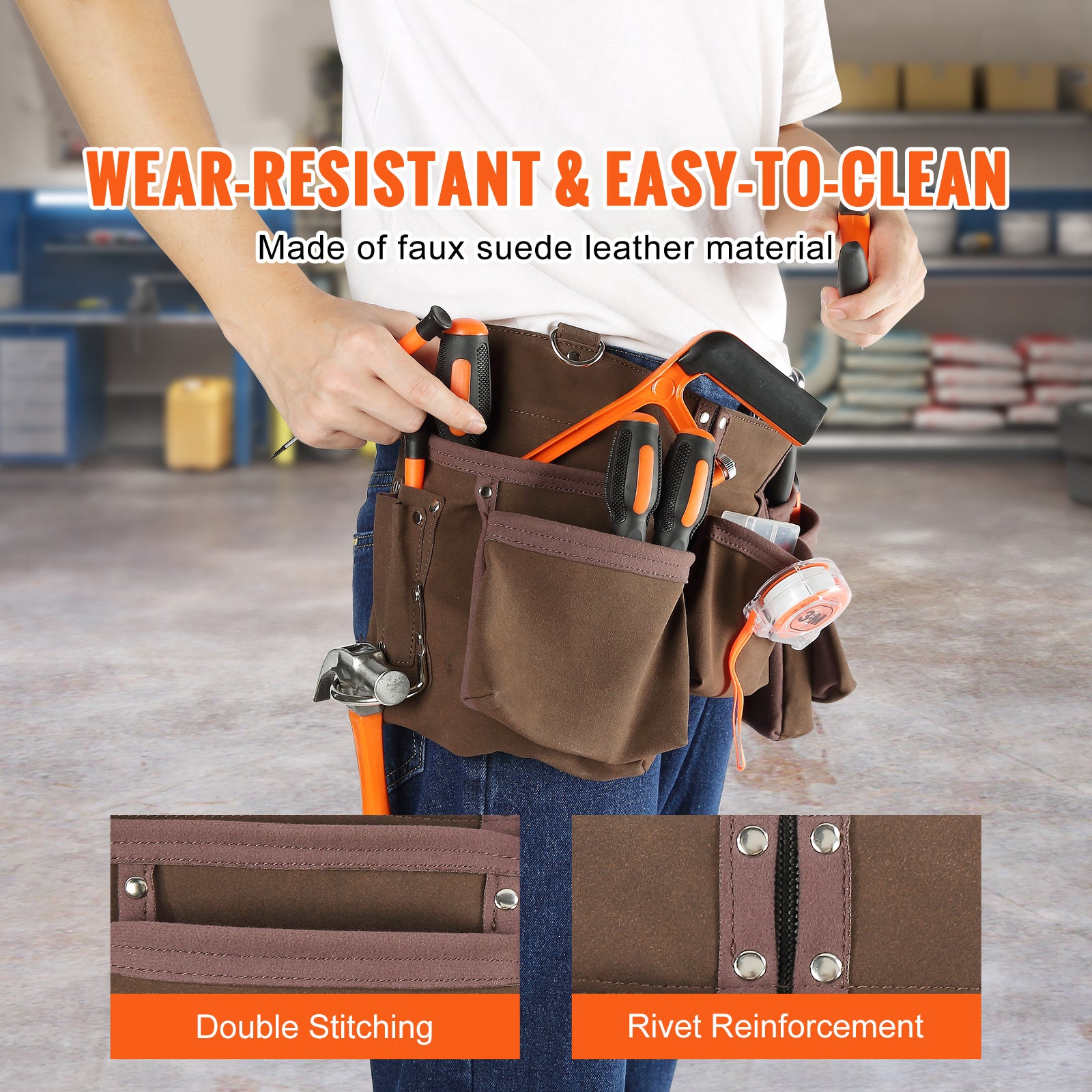 VEVOR 13 Pockets Tool Belt, Adjusts From 29 Inches To 54 Inches, Leather Heavy Duty Tool Pouch Bag With Dual Hammer Loops, Tool Bag For Electrician, Carpenter, Handyman, Construction, Framer, Brown