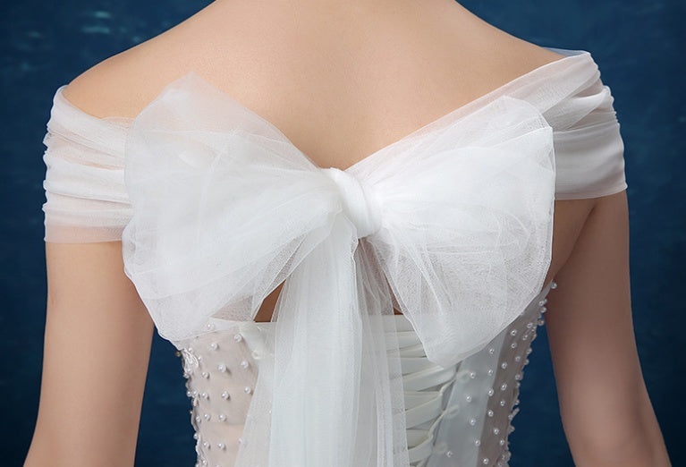 Wholesale fashion one word, shoulder lace, fishtail Tail Han bride married new wedding dress D95