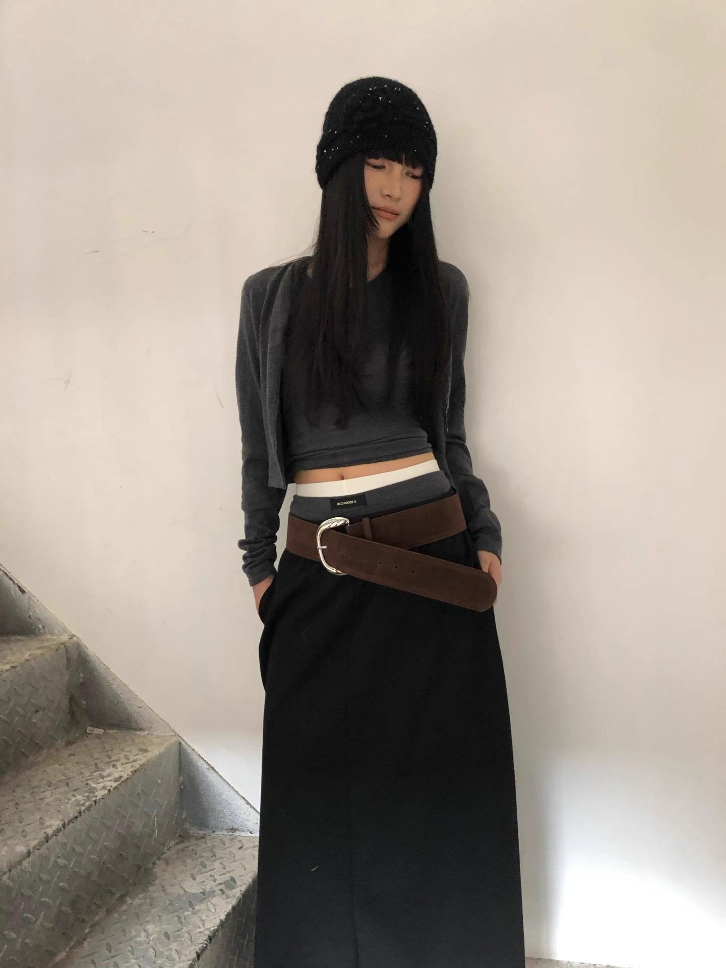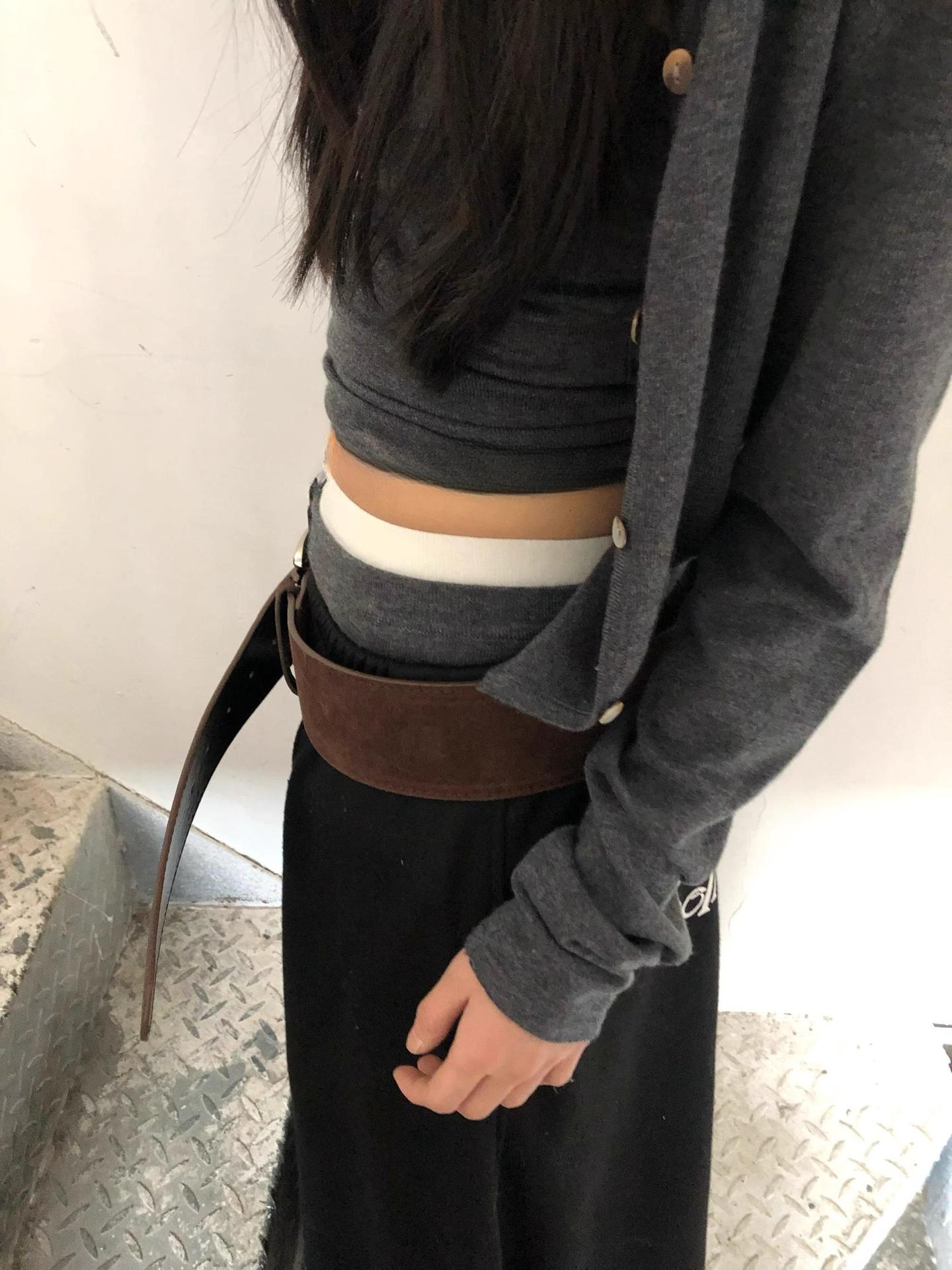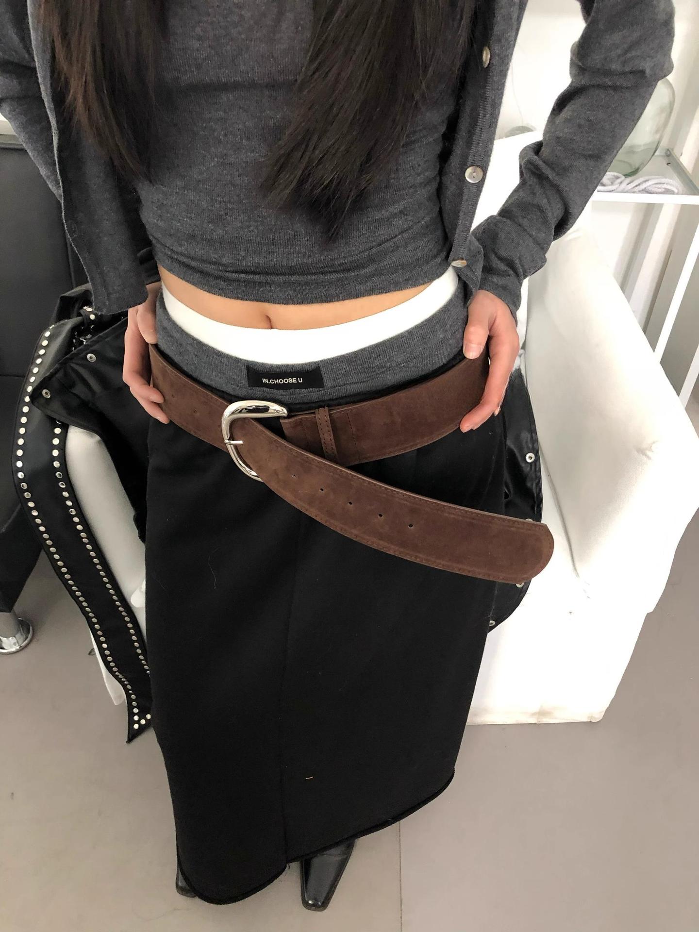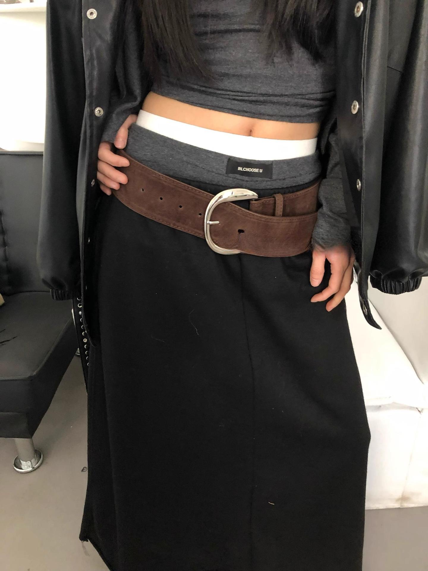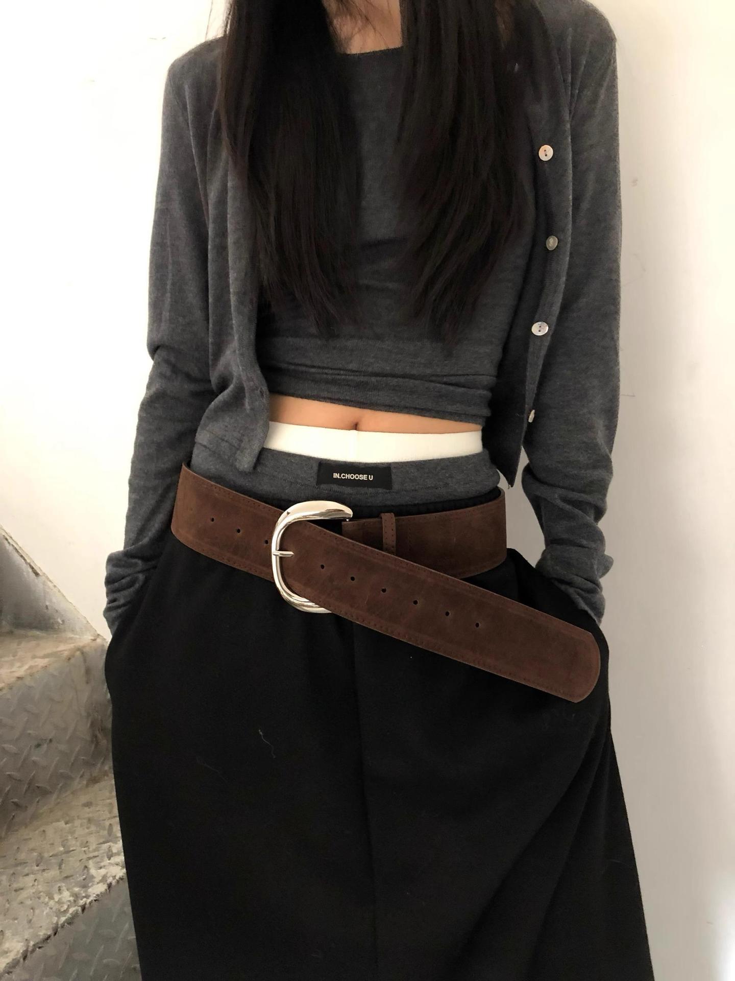 Wide Belt Niche Retro Y2g Hot Girl Suede Frosted Wide-brimmed Belt Silver Buckle