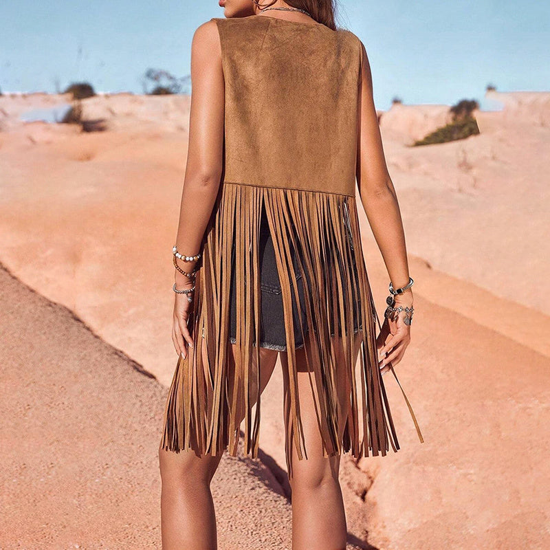 Embrace your inner cowgirl with this boho-chic Fringe Vest, blending vintage hippie vibes with wild west flair. Perfect for festivals, concerts, or adding retro attitude to everyday outfits, this statement piece features: