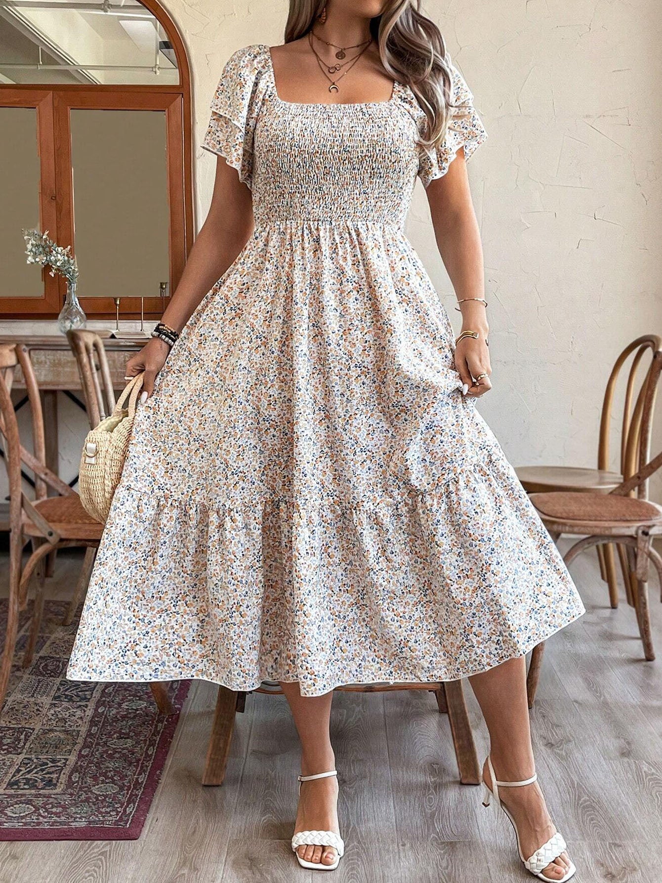 Women's Plus Size Backless Midi Dress For Summer Party - Elegant Pleated Printed Dress