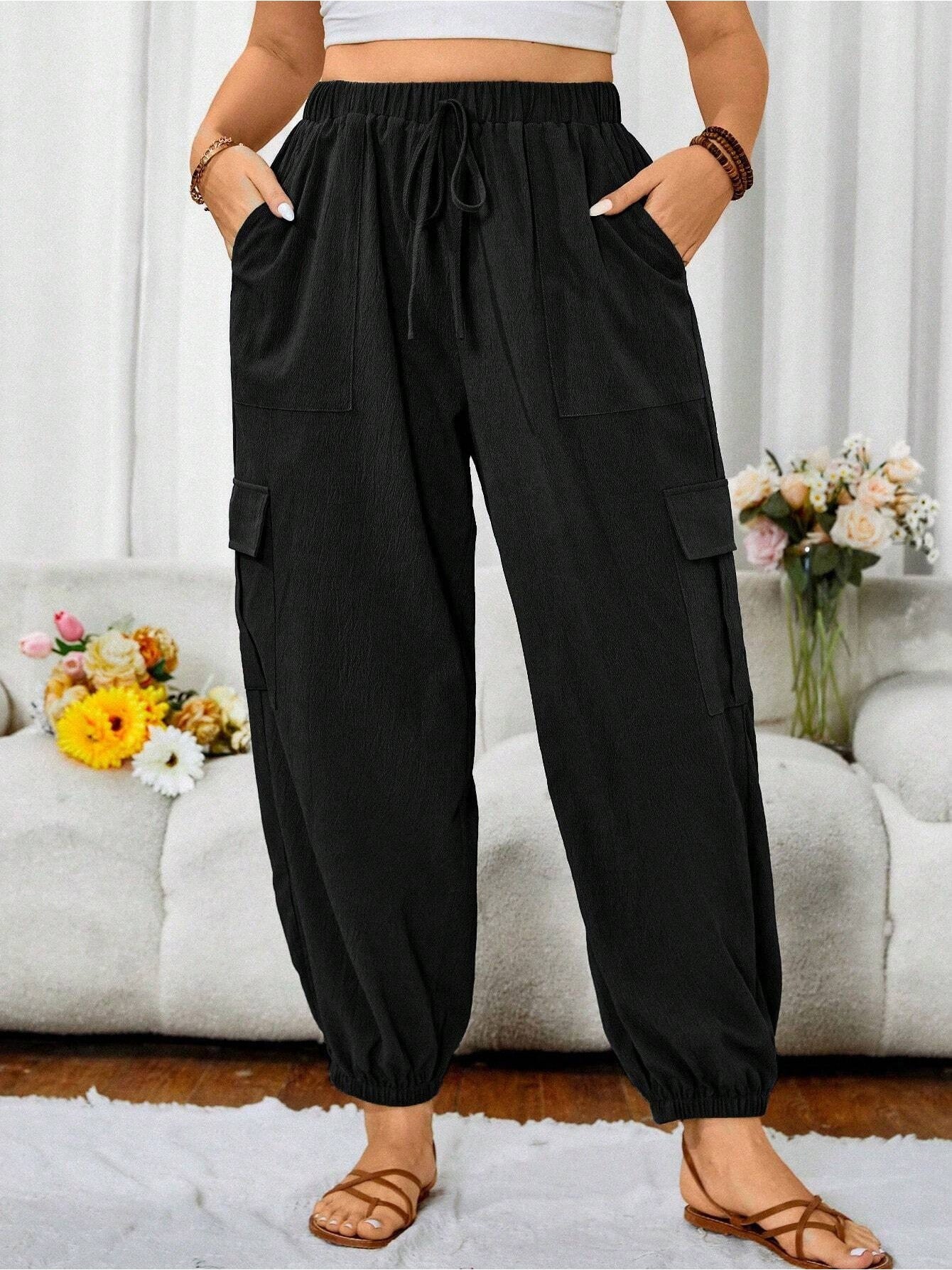 Women's Plus Size Casual Long Pants - Elegant & Minimalist Ankle-Cropped Trousers For Spring Or Autumn Daily Wear