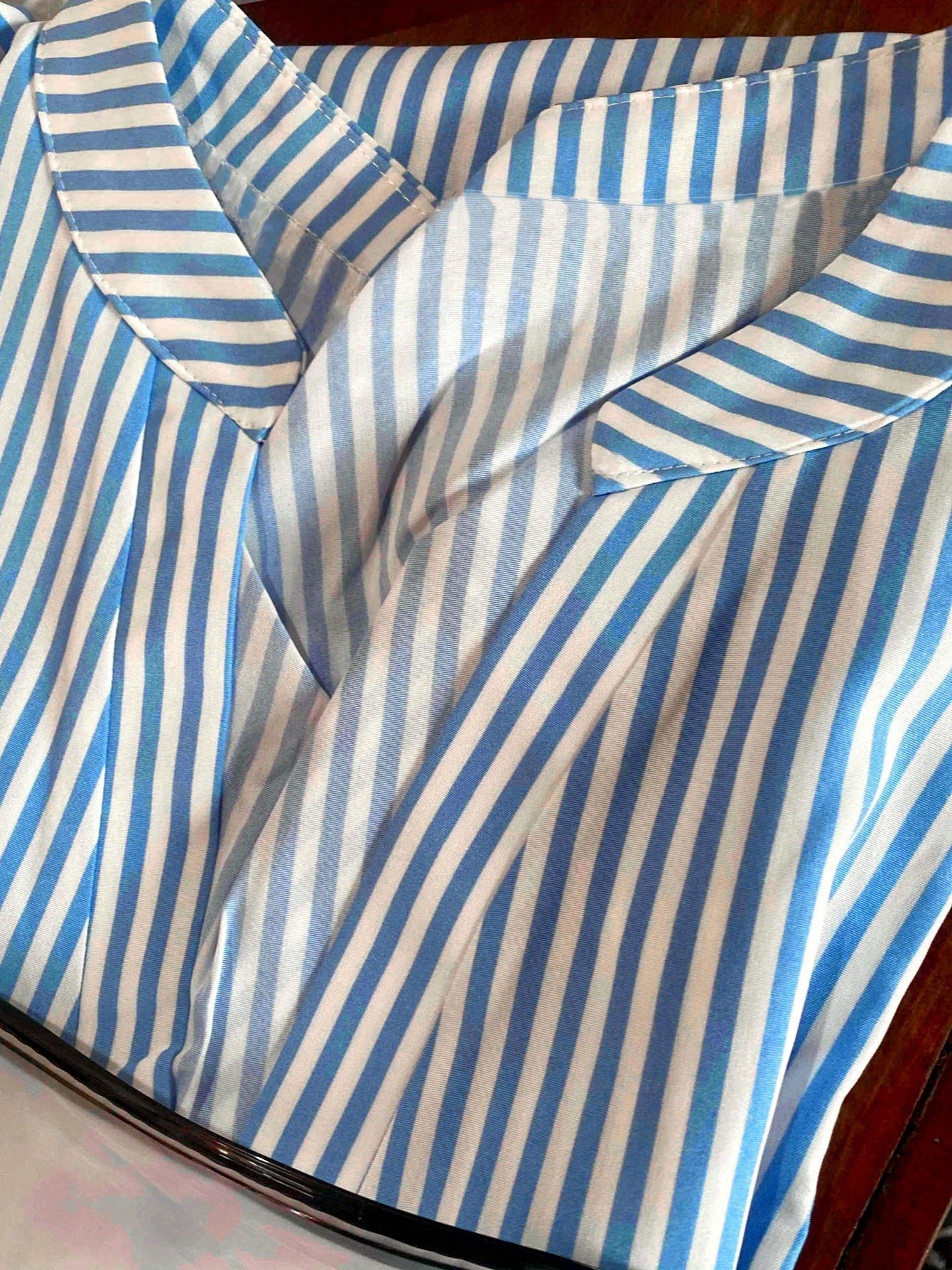 Women's Plus Size Casual Striped Shirt - Summer V-Neck Three-Quarter Sleeve Outdoor Top With Pockets