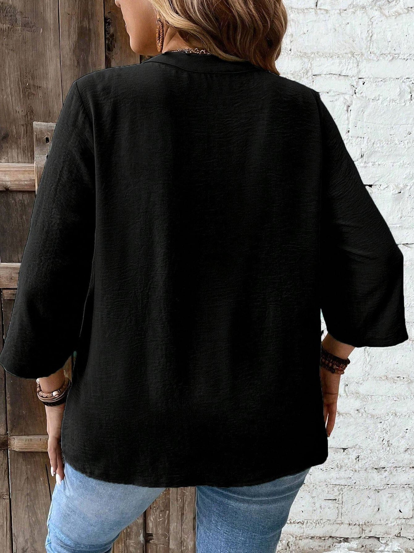 Women's Plus Size Lace Applique Vacation Shirt - Summer Casual Daily Outerwear With Roll-Up Sleeves And Button Closure