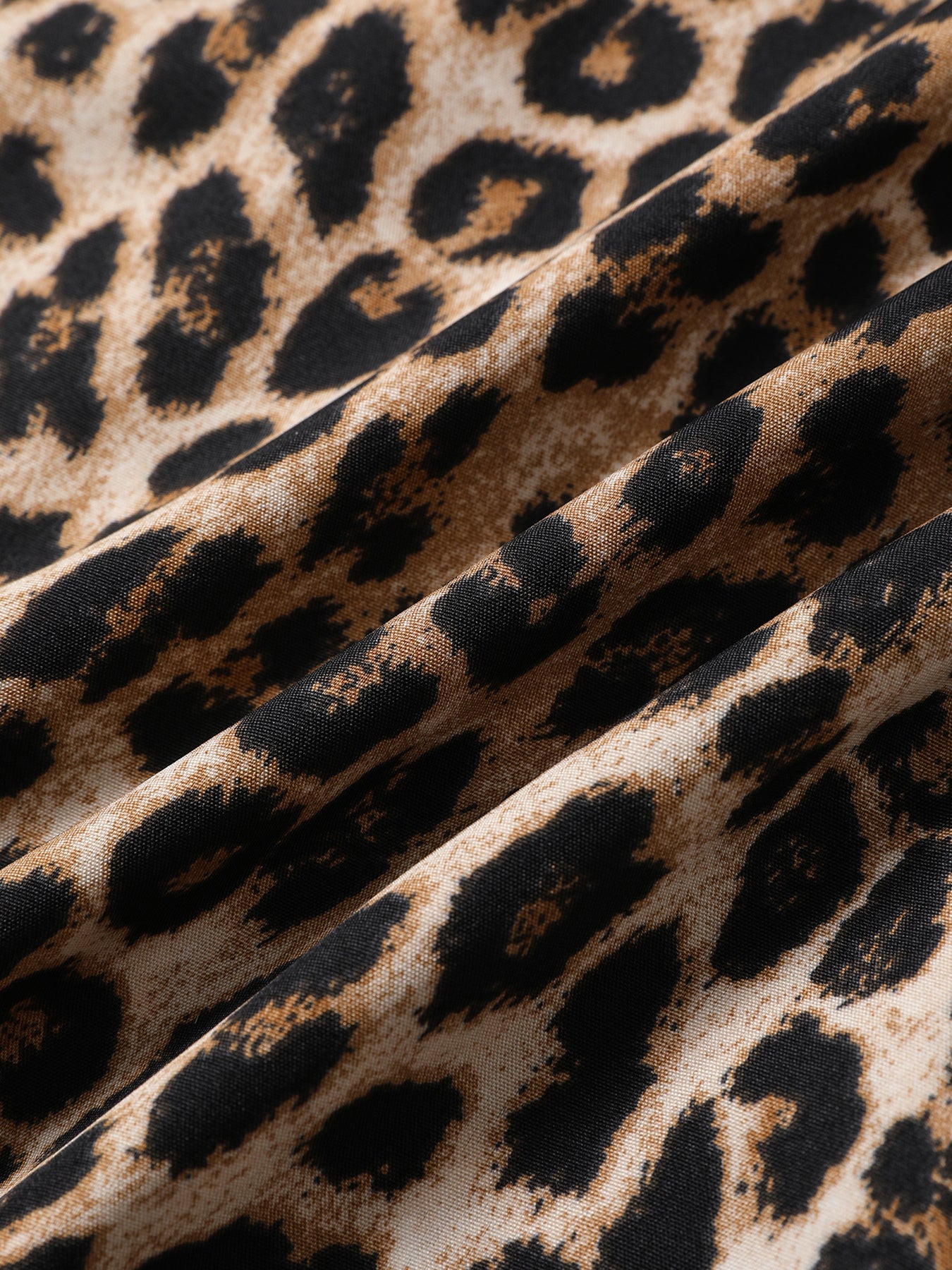 Women's Plus Size Leopard Print Dress - Summer Short Sleeve Button-Down Shirt Casual Loose Maxi Dress