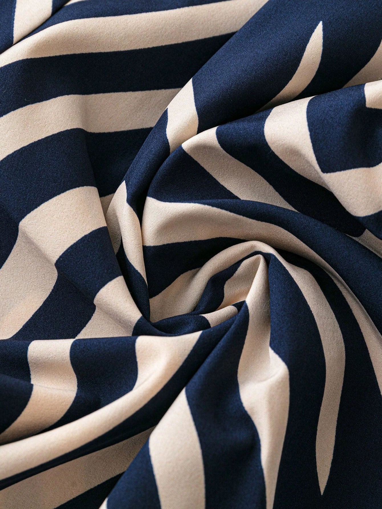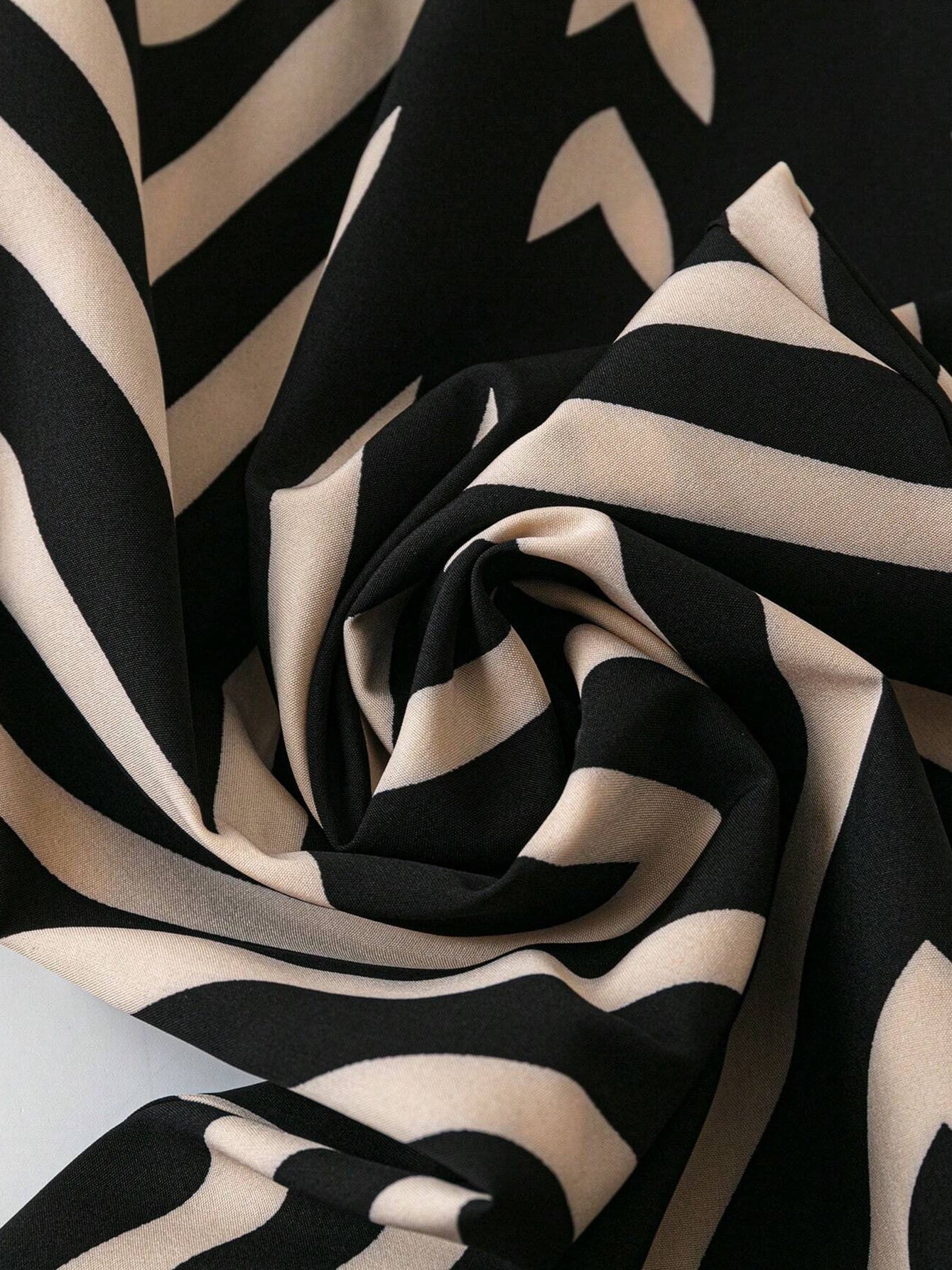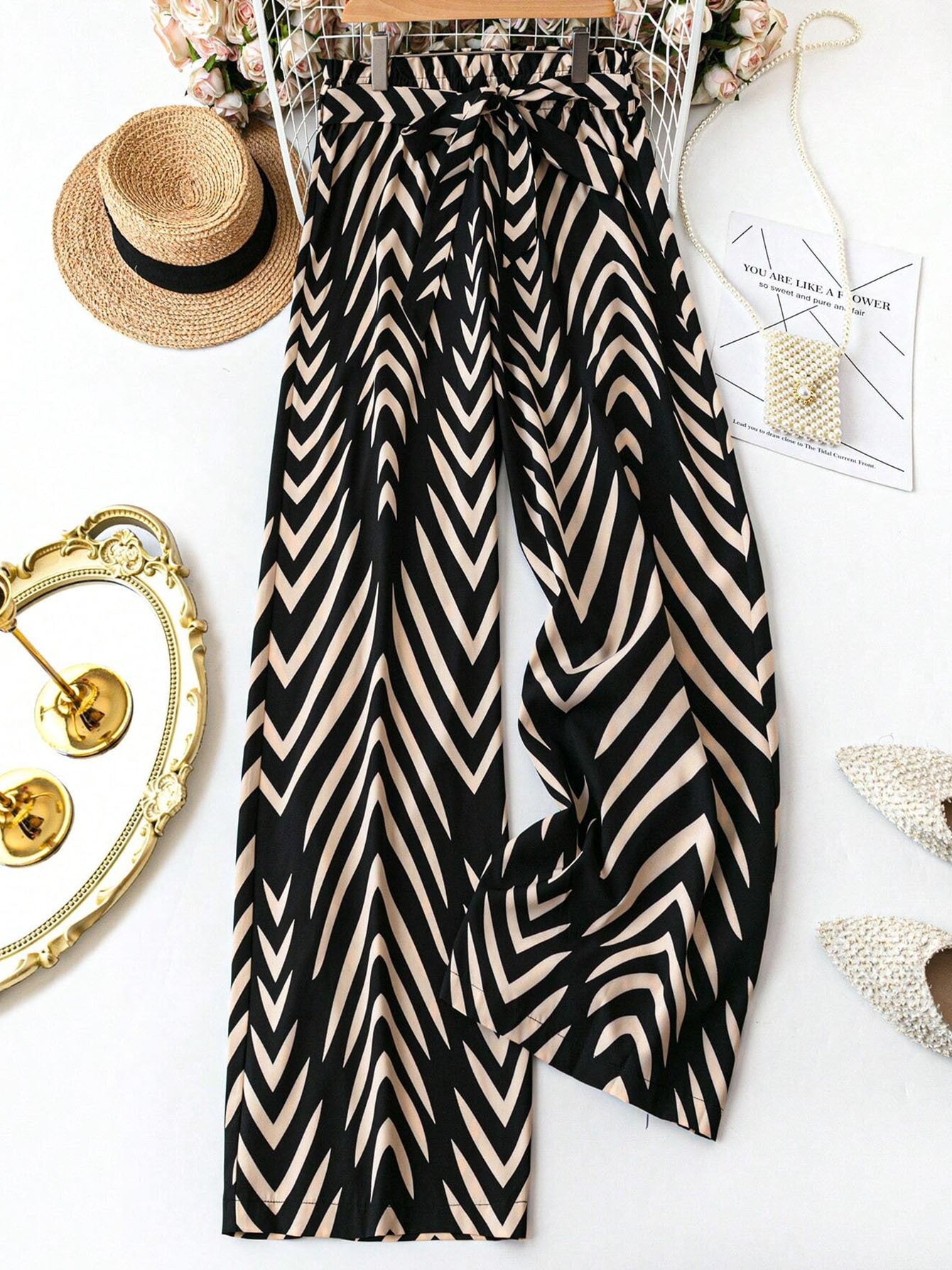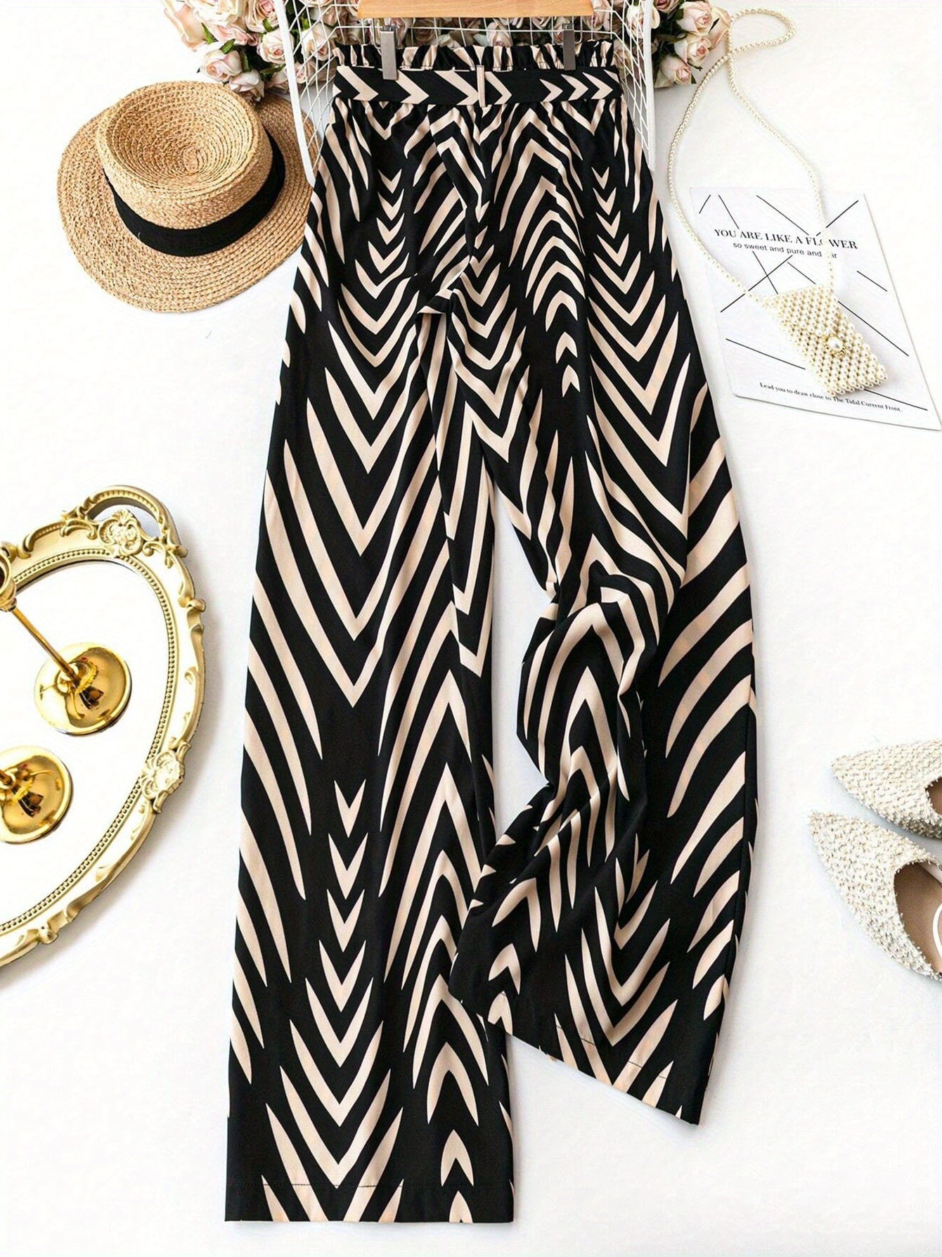 Women's Plus Size Printed Wide-Leg Pants - Summer Office Casual Black Trousers With Belt