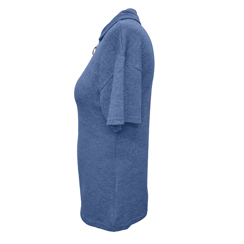 Upgrade your workwear wardrobe with our stylish polo shirt designed for business casual elegance ! This short sleeve collared blouse features a modern zipper V-neck that adds contemporary flair to classic office attire. The breathable stretch fabric ensures all-day comfort, while the tailored fit maintains a professional silhouette perfect for summer workplaces.