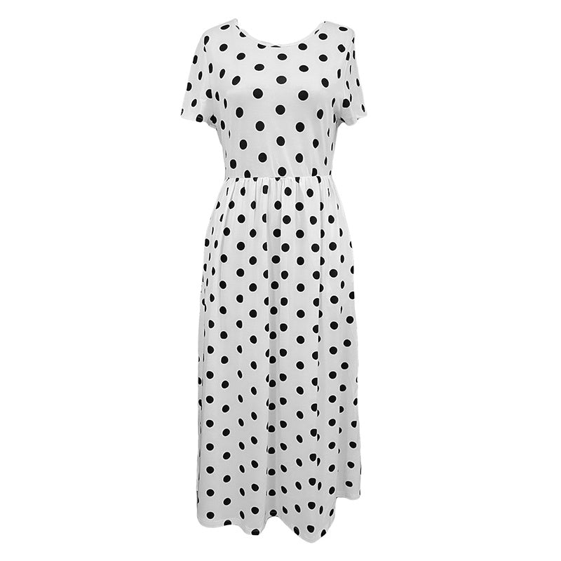 Women's Summer Short Sleeve Polka Dot Print Long Dresses Casual Beach Sundress With Pockets