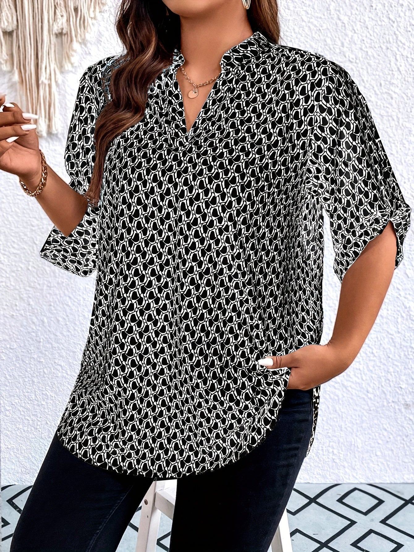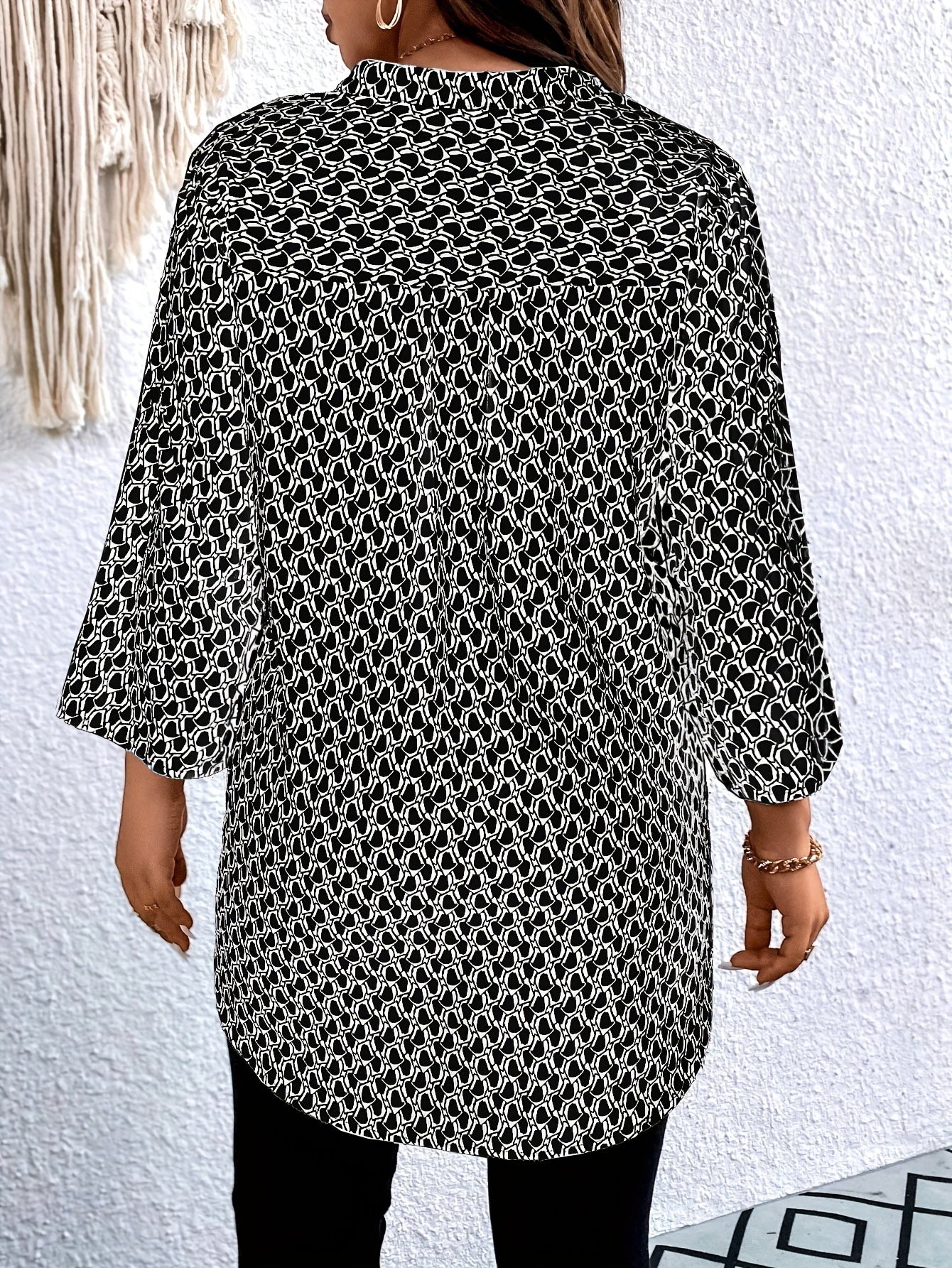 -Women's V-Neck Three-Quarter Sleeve Plus Size Printed Tunic Top