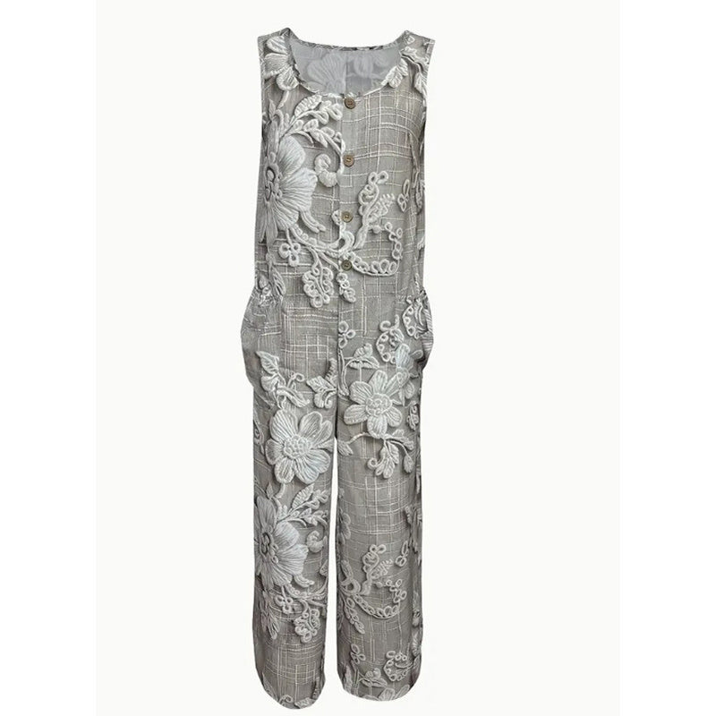 Women's Vintage Floral Jumpsuit - Sleeveless Button Front Romper With Pockets, Casual Loose Fit Long Pants Jumper