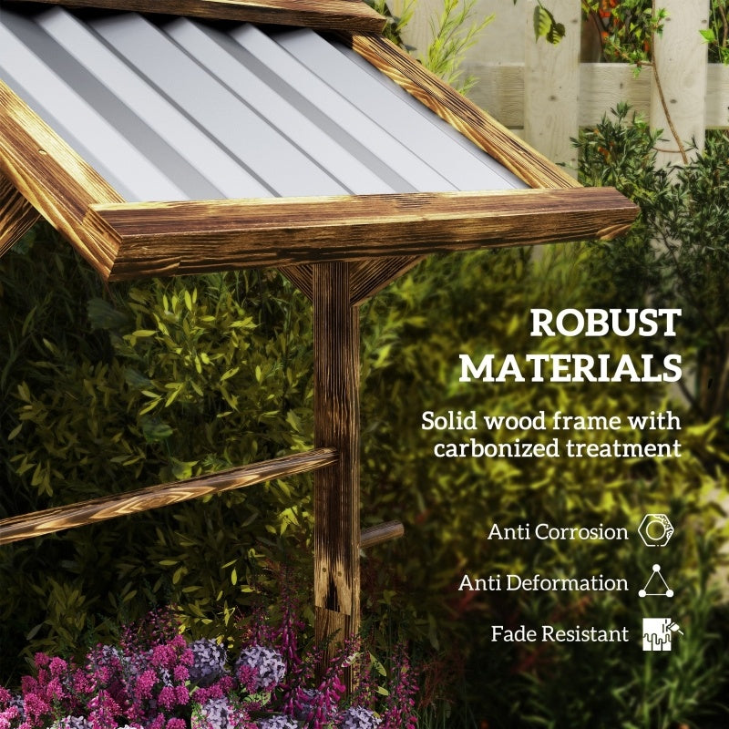 - - Galvanized steel rooftop shields flowers from rain and sun