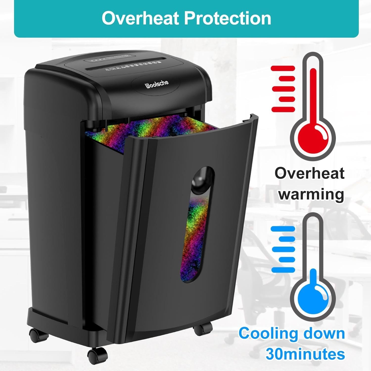 【P-4 High Security Level】The Shredding cutter can shred paper into 5/32" x 1-1/2"(4x38mm), Up to P4 Security Level. US patented cutter can prevent 100% damages to shredder from paper jams and prolong its life span