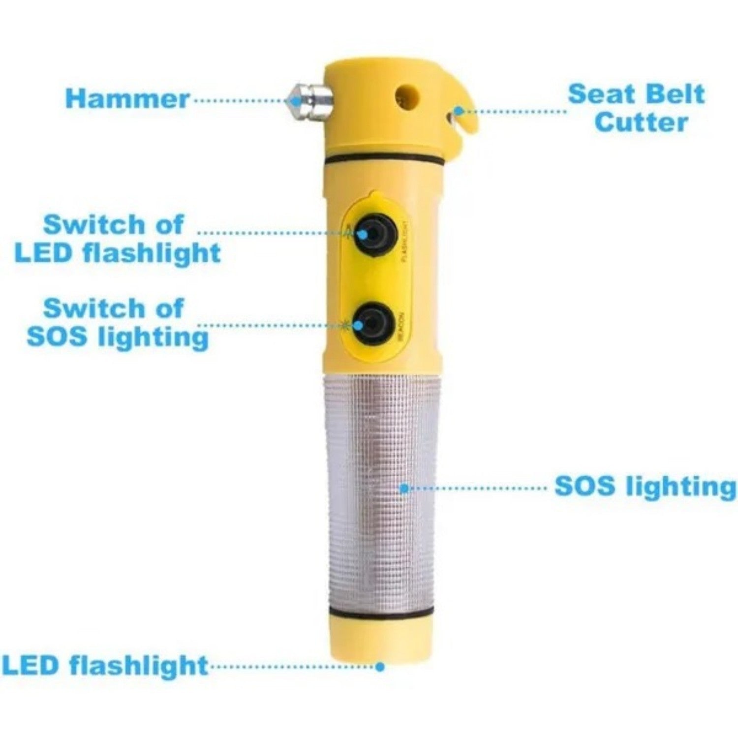 Yellow Multi-functional Car Safety Hammer With Flashlight